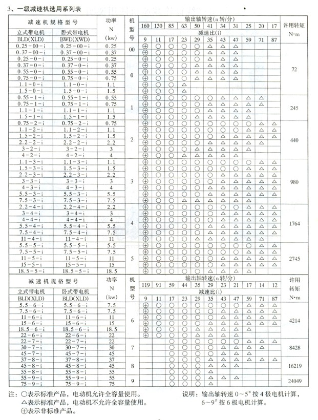 注:擺線針輪減速機(jī)根據(jù)用戶要求,可匹配調(diào)速電機(jī)、制動(dòng)電機(jī)、防爆電機(jī)、普通Y系列電機(jī)等。根據(jù)減速機(jī)機(jī)座號(hào)的大小匹配不同功率的電機(jī),(0.04kw)-75kw不等。