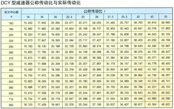 DBY型減速器公稱傳動比與實際傳動比