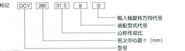 名義中心距為280mm,公稱傳動比為31.5,裝配型式第Ⅲ種,輸入軸順時針方向旋轉(zhuǎn)的三種傳動減速器標(biāo)記為DCY280-31.5-ⅢS。