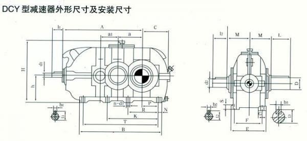 DBY型為二級傳動,DCY型為三級傳動。DBY型和DCY型第一級傳動為格里森弧齒錐齒輪,第二、第三級傳動為漸開線圓柱斜齒輪。
